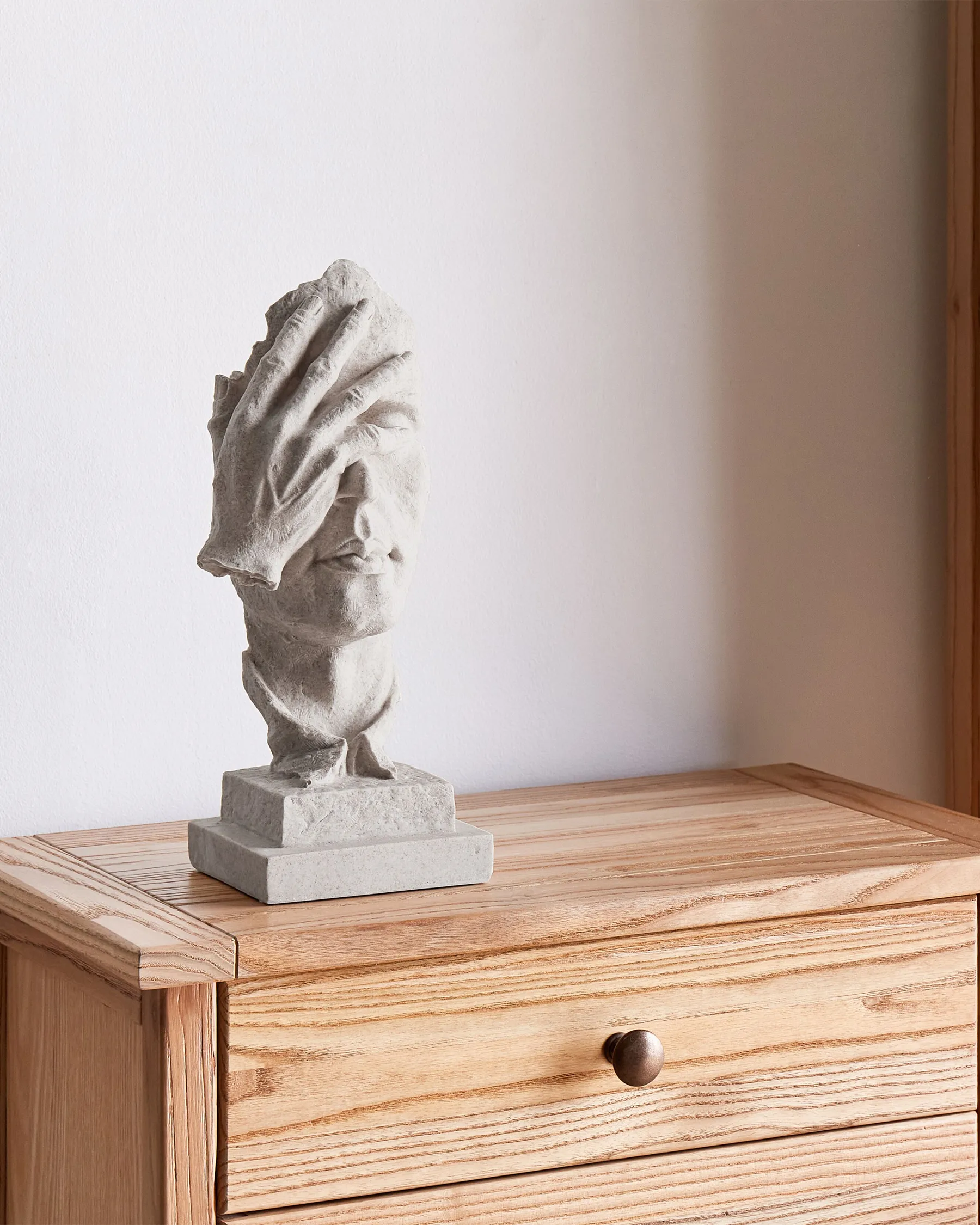 Elevate your contemporary living space with this striking decor figurine in grey, made from high-quality and solid resin. This accent piece features a human’s face whose expression can be interpreted in many ways. Its minimalist design adds a touch of sophistication and intrigue to any room, especially to modern interiors.